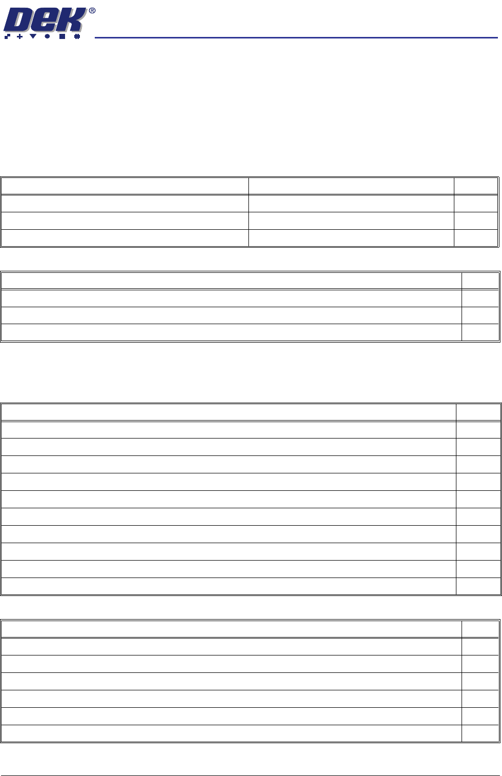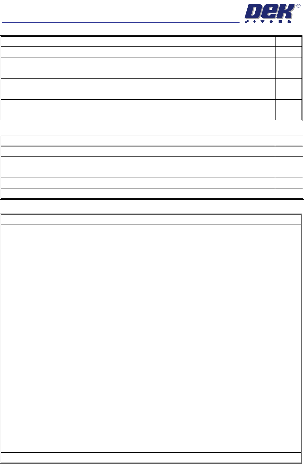 Check the DC voltage levels are within tolerance as detailed in the DEK Power Monitor program.