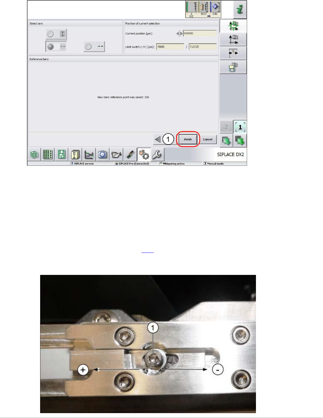 ➢ Retighten the screw (1) and repeat the measuring steps (see "3.7.5 Replace the Reference