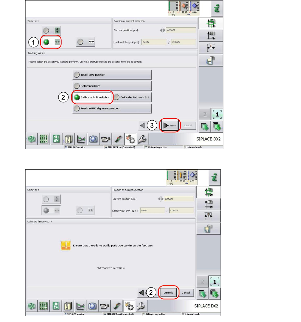 Service Manual In ternal WPC5 / WPC6 Page 4-131 4.2.4 Calibrating the Limit Switch The p lus an d min us pos ition o f the limit s witc hes n eed to be ca libra ted. Calibrating the limi t switch - ➢ Select the feed ax…
