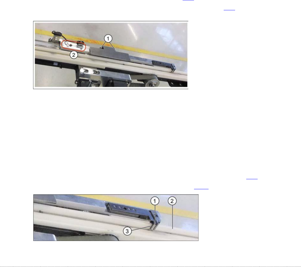➢ Set the driver (1) to a distance of approx. 0.5 mm (3) to the white plastic guidance (2).