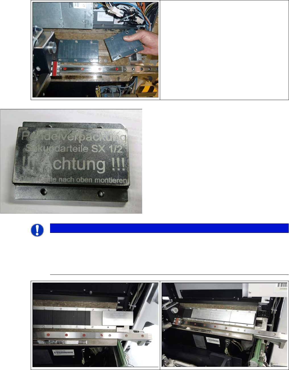 Servicearbeiten Austausch / Ausbau der Y-Magnete 22 Service Manual (Internal) SIPLACE SX1/SX2/DX1/DX2 Magnete Montieren ▪ Legen Sie vor der Mo ntage der Magnete auf d en letzen Magneten die Teflonplatte und die Sicher - …