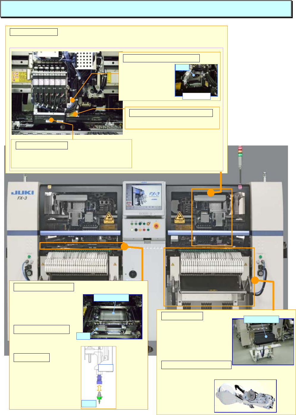 操作手册 Rev00 1- 3 1 1 设 设 备 备 的 的 概 概 要 要 FX3 贴片机,是在焊锡印刷基板上、或涂有焊锡的电子电路基板上贴装电子元件的一种设备。 贴片头从元件供应装置 (带式送料器等) 上吸取元件, 进行定心之后, 把元件贴 装到程序指定的基板 坐标上。 1-1 本设备的概要 ②部品中心検出と搭載位置移 動 ③基板 の上に 部品を 搭載 ② 检出元件中心与贴片位置移动 ① 吸取元件 ③在基板上 贴装元件