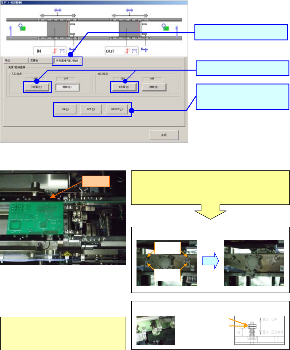 ② 把基板放在传送道上后,在传送控制画面中进行操作,将「支撑台」升高。