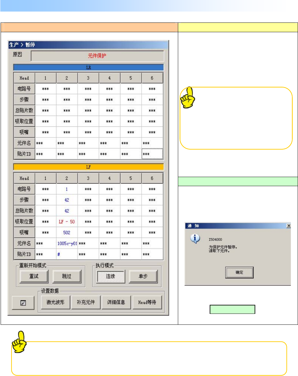 生产运行中(XY 轴移动中)打开保护盖时,显示如下画面,装置进入暂停。