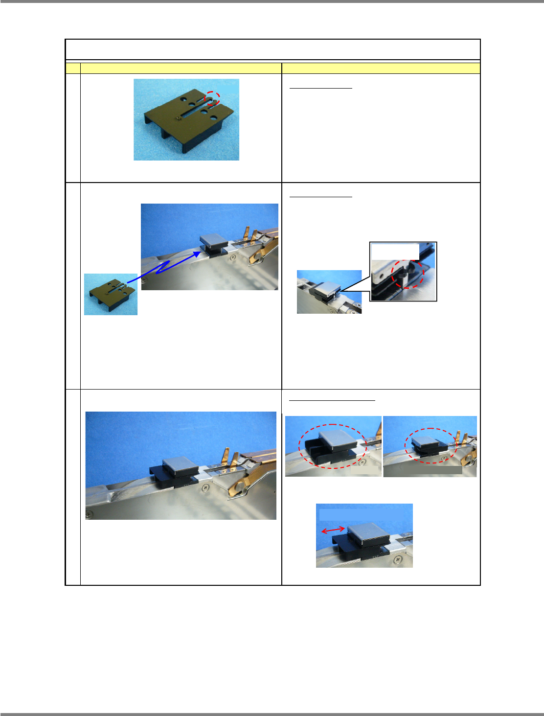Intelligent Tape Feeder 操作手册 6.2 编带搬送通路的清扫 INTF-C-OMB06-A01-06 Page 6-15 6.2.2 资料 (8 mm 编带导轨的安装步骤 ) No ◆テープガイドの準備 ・ 取付前にテープガイドの『爪の折れ』『変形 』 『バリ』などが無い事を確認します。 ◆テープガイドの取付け ・ 方向を間違えない様、テープガイ ドを取付けます。 ・ テープガイドの爪がセ ンサーブラケット端面に…