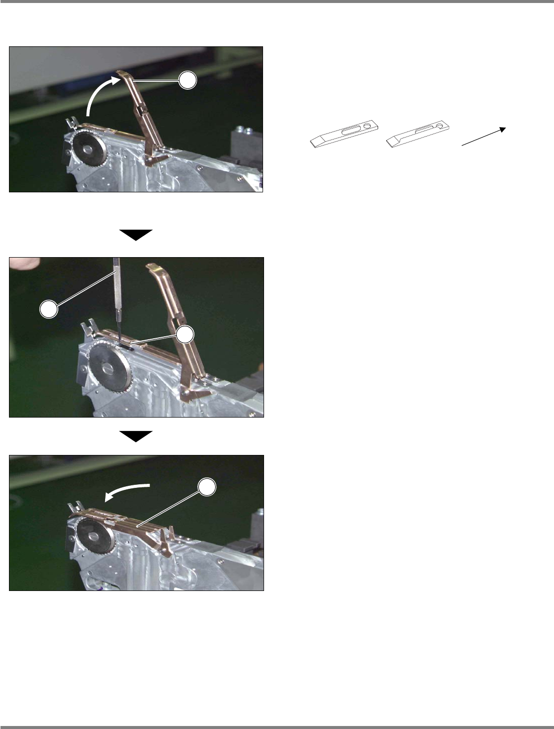 Intelligent Tape Feeder 操作手册 3.3 区块的安装与拆卸步骤 INTF-C-OMB03-A01-04 Page 3-19 3.3.8 塑编带用区块的拆卸方法 (8 mm 编带供料器时 ) 1. 用精密十字螺丝刀 卸下区块 。 螺丝刀请使用 #0 。 INTF-044P 2 1