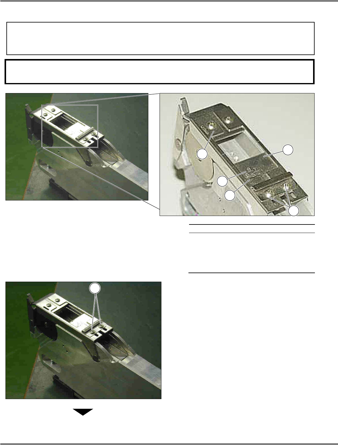 Intelligent Tape Feeder 操作手册 4.1 进给间距变更的调整 INTF-C-OMB04-A01-02 Page 4-3 1. 拧松编带压盖区块的进给间距变更板 上的固定螺钉 。 2. 移动进给间距变更板, 把设定进给间距 数字下面的刻度与设定进给间距的基 准面 相对齐。 3. 拧紧进给间距变更板上的固定螺钉 , 固定进给间距变更板。 螺丝刀要使用 #1 。 拧紧扭矩标准为 40 cN·m 进给…