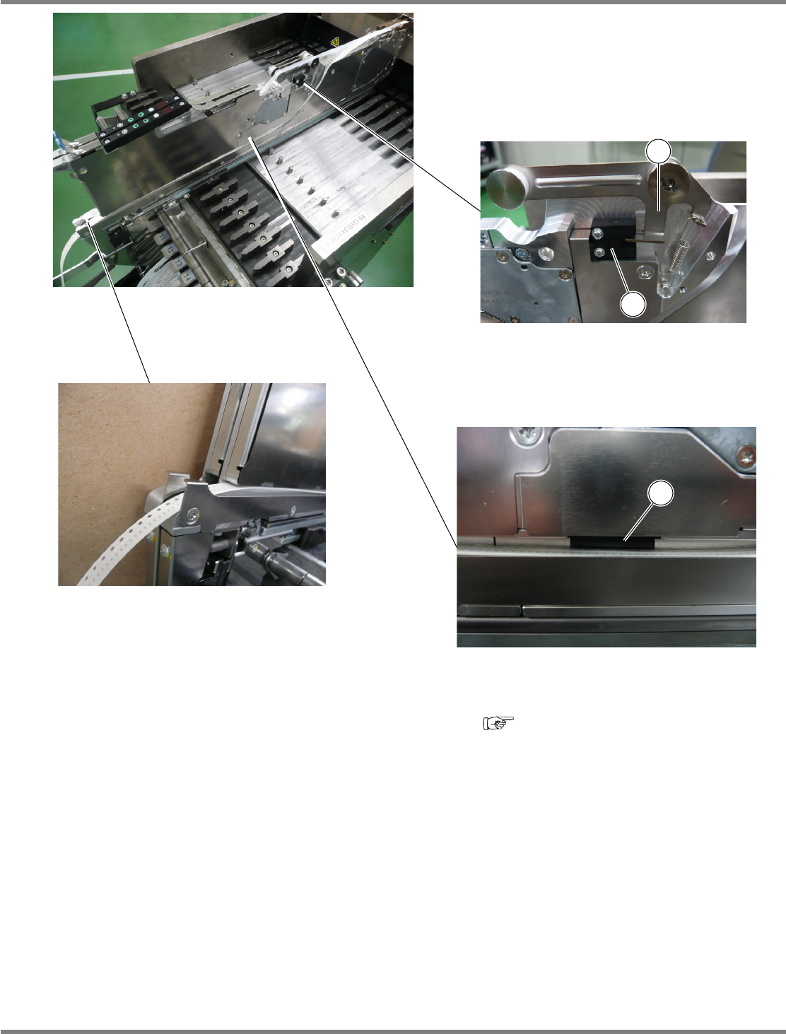 当在编带供料器定位孔②的内部附着有芯片碎片、编带废屑、脏物、灰尘等异物时,