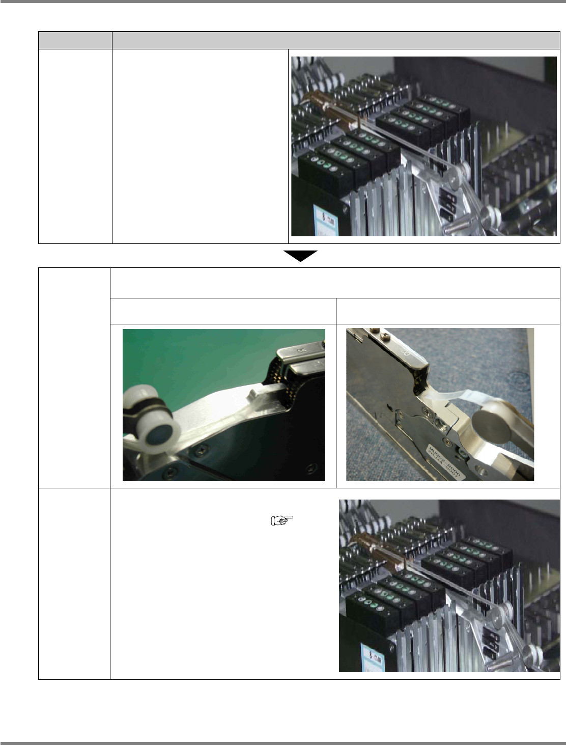 Intelligent Tape Feeder 操作手册 7.1 关于故障 Page 7-4 INTF-C-OMB07-A01-06 原因 B 顶层带拧劲了。 INTF-064P 对策 B 正确安装顶层带。 INTF-067P