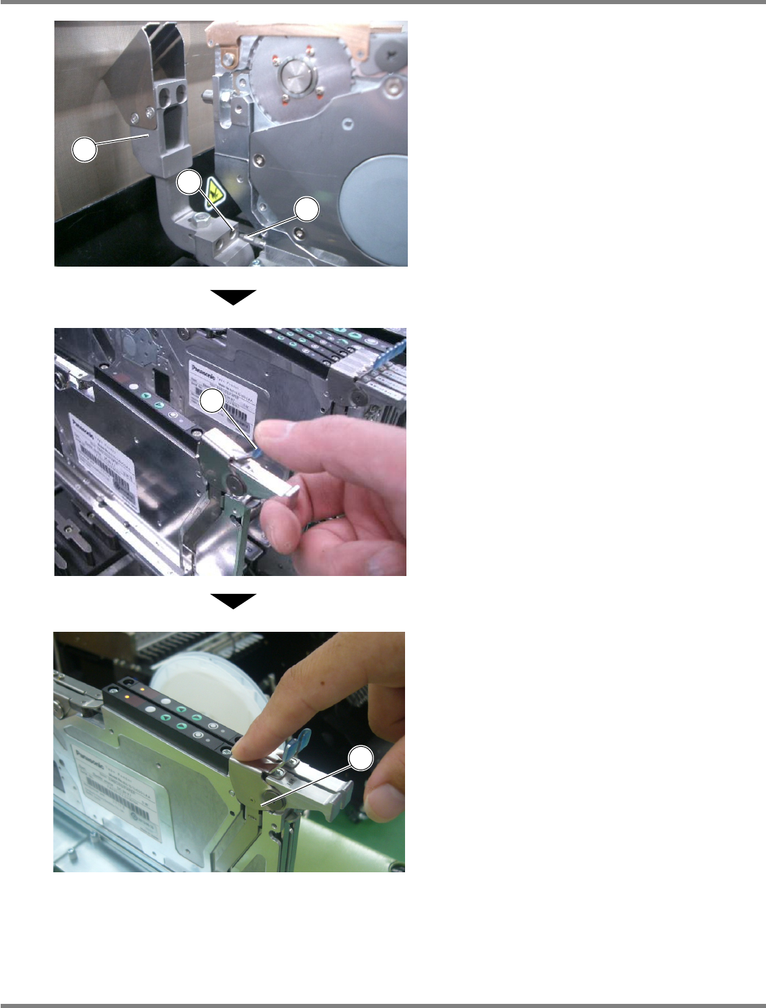 用手指拉住编带供料器上的把手④后,