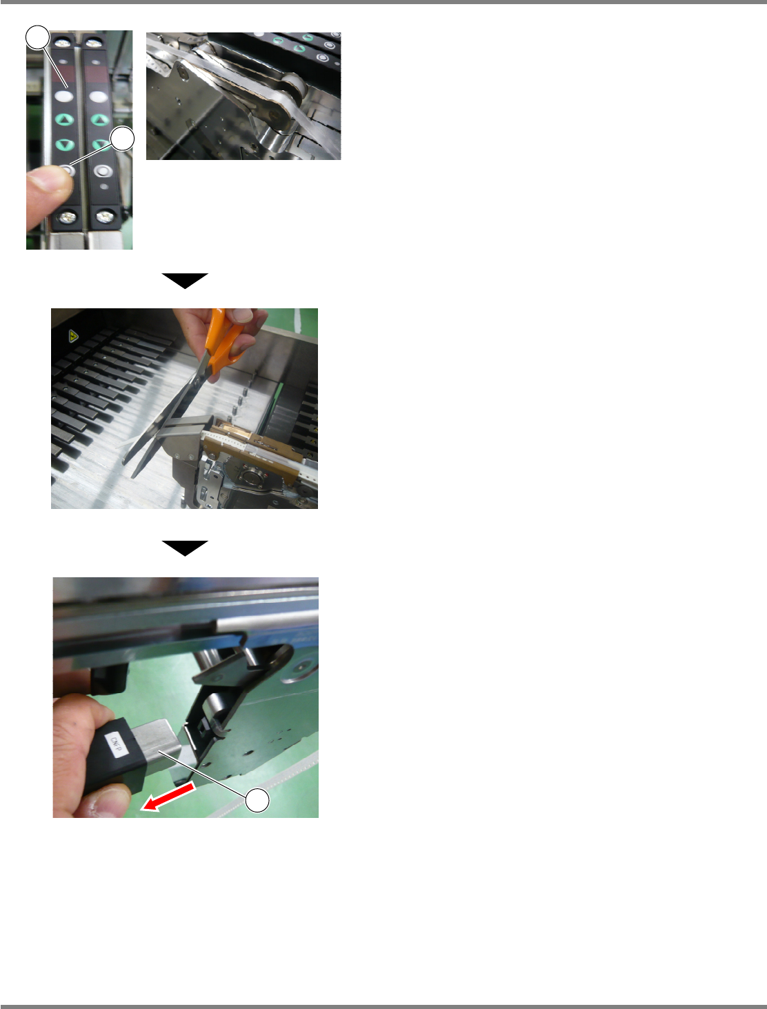 用剪刀切断从专用附件的导轨盖尖端