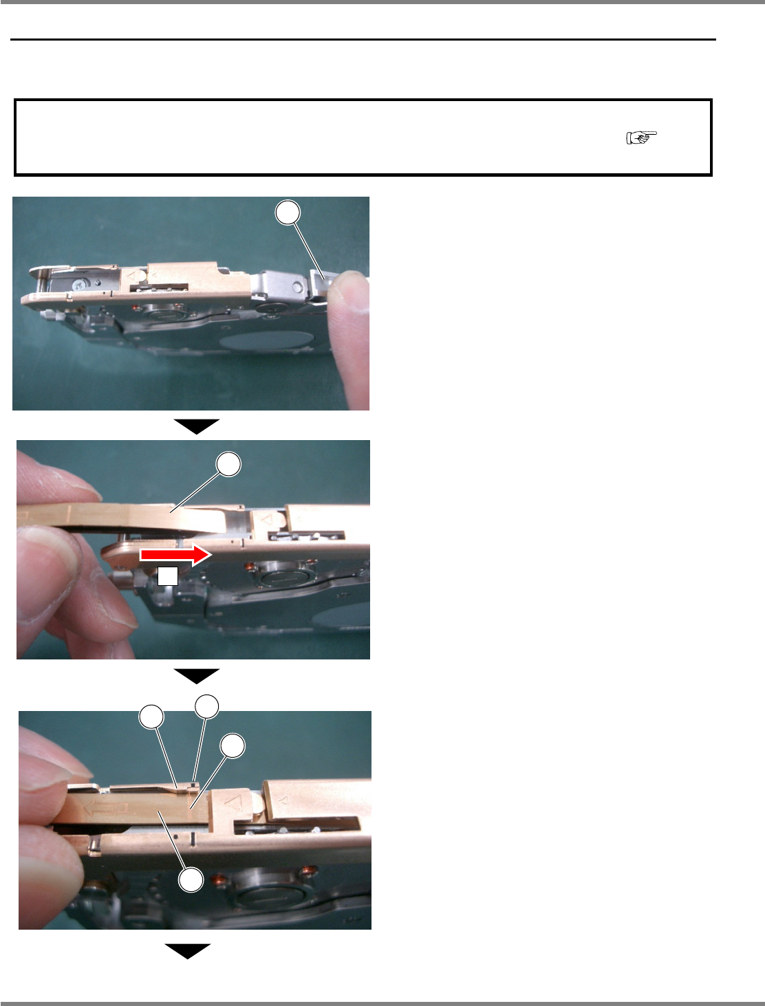 Intelligent Tape Feeder 操作手册 3.3 区块的安装与拆卸步骤 INTF-C-OMB03-A01-04 Page 3-7 4. 用手指稍微移动区块②的左右两端, 使 框架⑥的定位孔与区块②的销相咬合。 5. 确认区块的安装状态。 <OK 时 > No. 状态 盖上的线与区块的线相一致。 区块没有浮起。 INTF-090P INTF-090P 6 2 销 定位孔 INTF-261P 2 …
