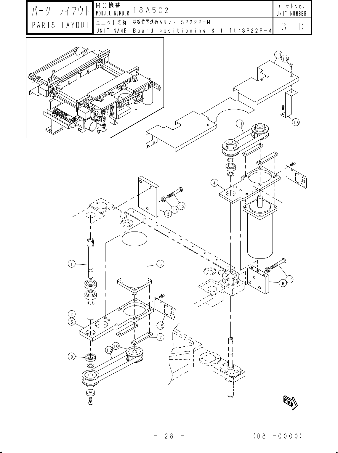 1 18A5C211162 TABLE 1 2 18A5C211171 TABLE 1 3 18A5C211561 SHAFT 3 4 18A5C261040 PW003C1 1 5 18A5C261051 NUT 8 6 18A5C261093 DOG 1 7 18A5C281092 BALL-SCREW W1400-170Y-C3T2(DA) 3 8 KXF07JRAA00 PH-SENSOR PM-L53-C1 1 A 9 18A…
