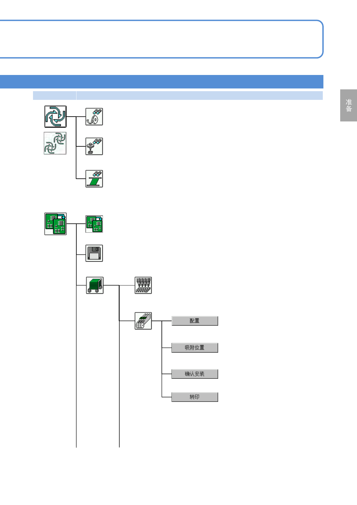 NPM-D3A EJM6EC-MB-02O-0 2 第 1 阶层 第 2 阶层 第 3 阶层 第 4 阶层 2-2-2 -5 工程师模式 1 各部位 名称 菜单构成 3 主菜单 变更操作模式。 变更操作模式 编辑操作模式。 编辑操作模式 生产菜单 ( 生产前 ) 生产开始 开始自动生产。 调整用软件开关 为了调试机器,暂时变更操作环境。 条件贴装 供料器 贴装头 清除 以图案单位来指定贴装对象。 以贴装点单位来指定贴装对象。 以零部件单…