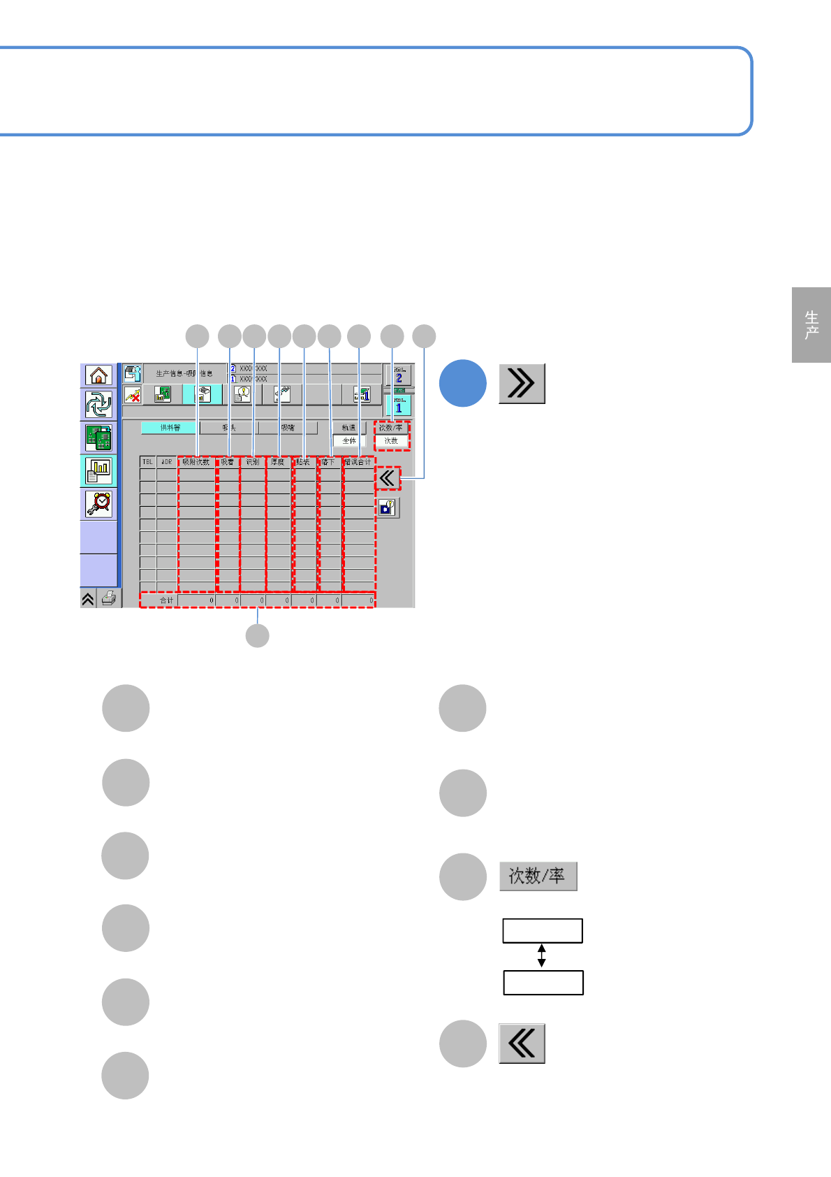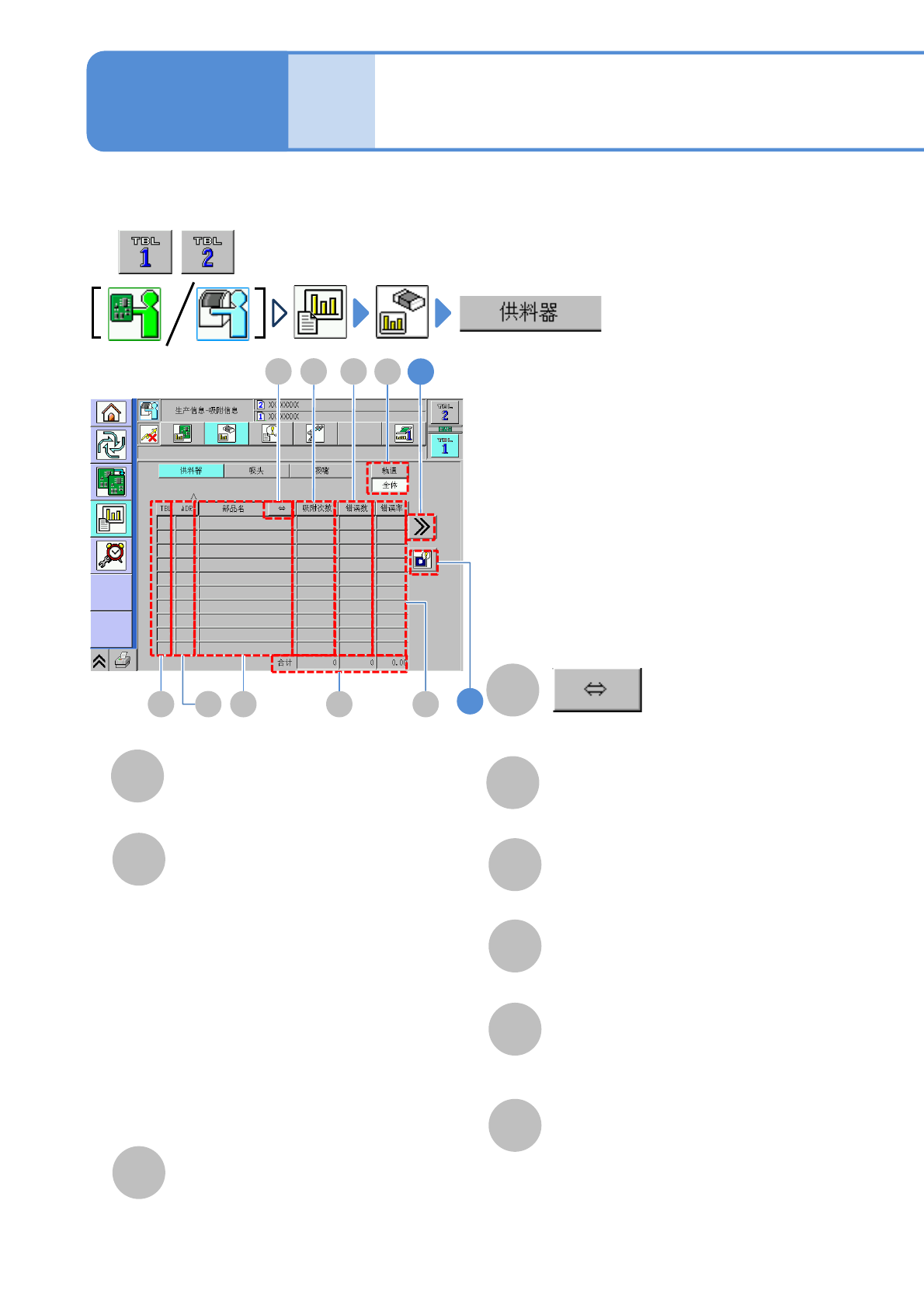 NPM-D3A EJM6EC-MB-03O-0 1 3-2-3 -2 A B C D E 选择表示的种类。 厚度 元件厚度的错误次数或者错误率。 贴装 贴装错误的次数或者错误率。 G I H 吸着 吸着错误的次数或者吸着错误率。 识别 识别错误的次数或者识别错误率。 返回原来画面。 J 落下 元件落下的错误次数或者错误率。 F 次数 率 吸着次数 各供料器的吸着次数或者吸着率。 错误合计 各供料器的错误次数合计或者错误率 。 合计 所有…