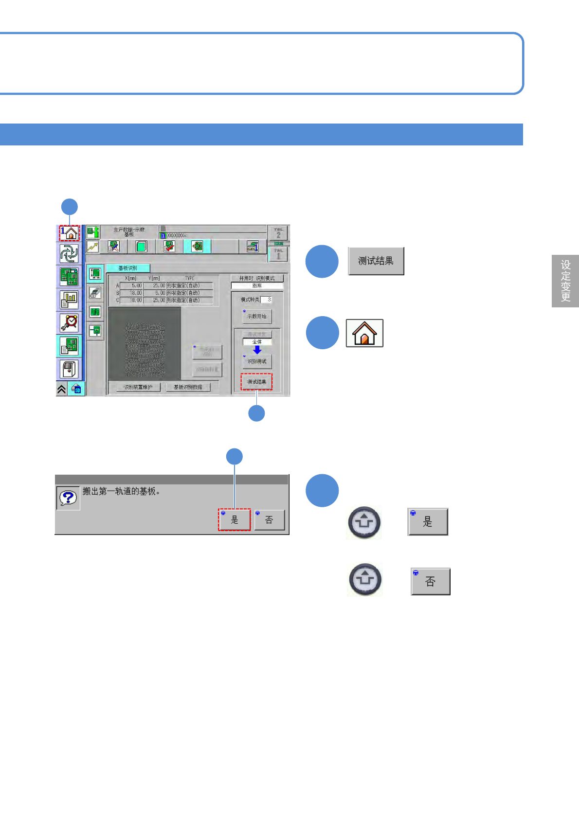 NPM-D3A EJM6EC-MB-04 O-02 17 18 + 确认提示 18 ●可以转移到其他画面。 ■再次确认数据时 16 ( 识别标记的测试结果再次显示 ) 4-2-2 -6 ■不传出基板时 + 17 16