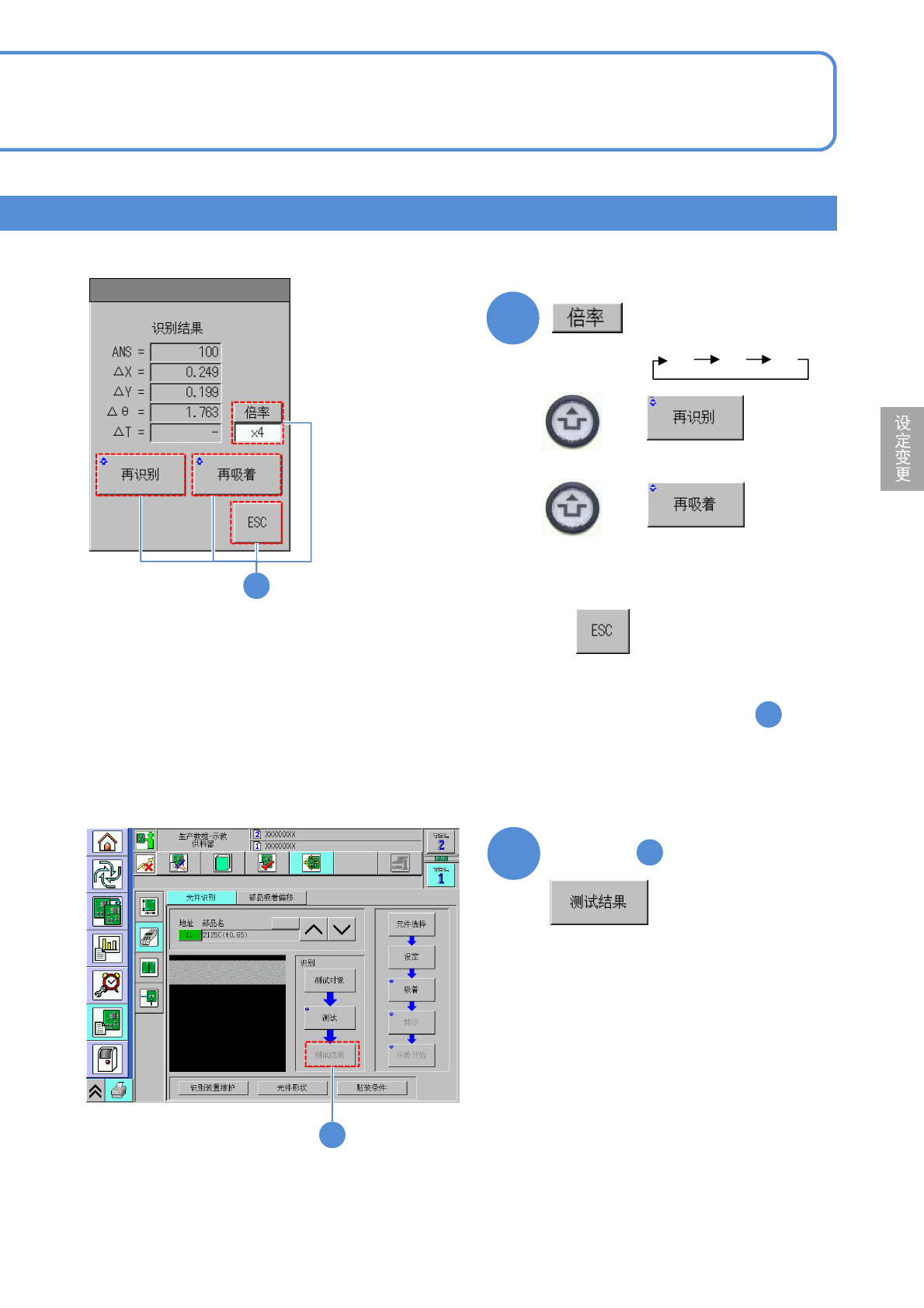 NPM-D3A EJM6EC-MB-04O-0 2 4-2-4 -10 20 再次确认 的结果时 19 ●在识别结果栏,确认「 ANS = 100 」的显示内容。 ● ANS 不满 100 时,再次从 开始操作。 确认识别结果 1 19 20 19 + + :每按一次,图像的倍率 将按照顺序切换 × 1 × 2 × 4 :进行再识别 :进行再吸着 :关闭弹出式窗口