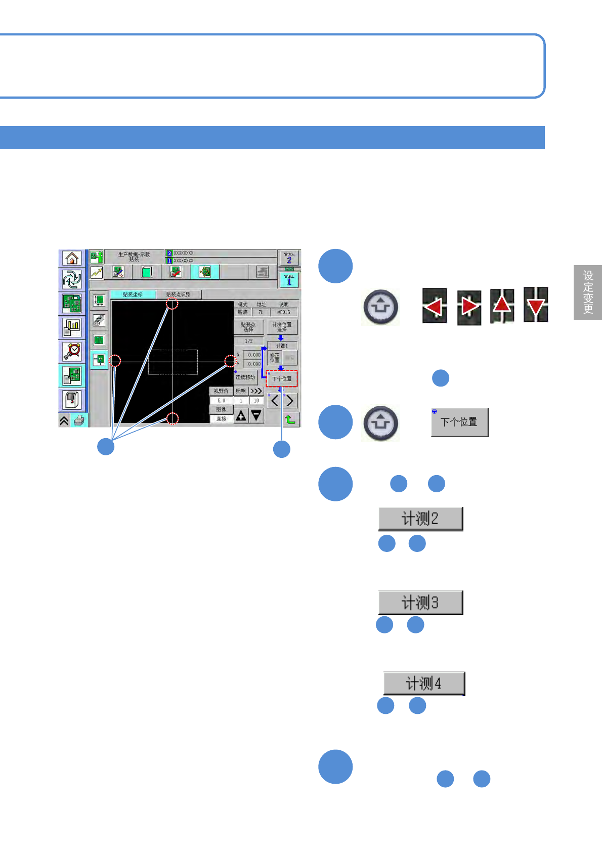 NPM-D3A EJM6EC-MB-04O-0 2 生产数据 校正 操作篇 4-2-9 贴装坐标校正 9 4-2-9 -17 元件位置指定的校正 1 1 2 2 4 确认提示 5 在 选择 5 ● 都需要进行。 中 ~ 的操作 进行「通过元件进行校正 ( 计测方 法 : 1 点 ) 」 1 7 4 3 + 3 ■ 不要转到元件位置指定画面时