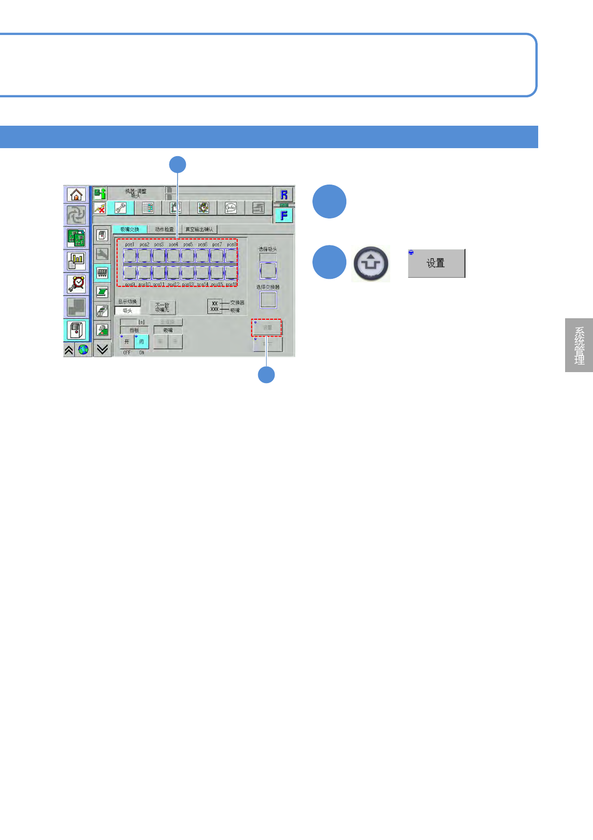 NPM-D3A EJM6EC-MB-05 O-01 单元调整 5-2-5 -3 1 2 3 1 贴装头的吸嘴更换 2 操作篇 5-2-5 选择 吸嘴的安装 把吸嘴交换器内的吸嘴安装在贴装头 。 ( 按钮变成蓝色 ) 在 在 选择 选择需要安装的吸嘴 2 3