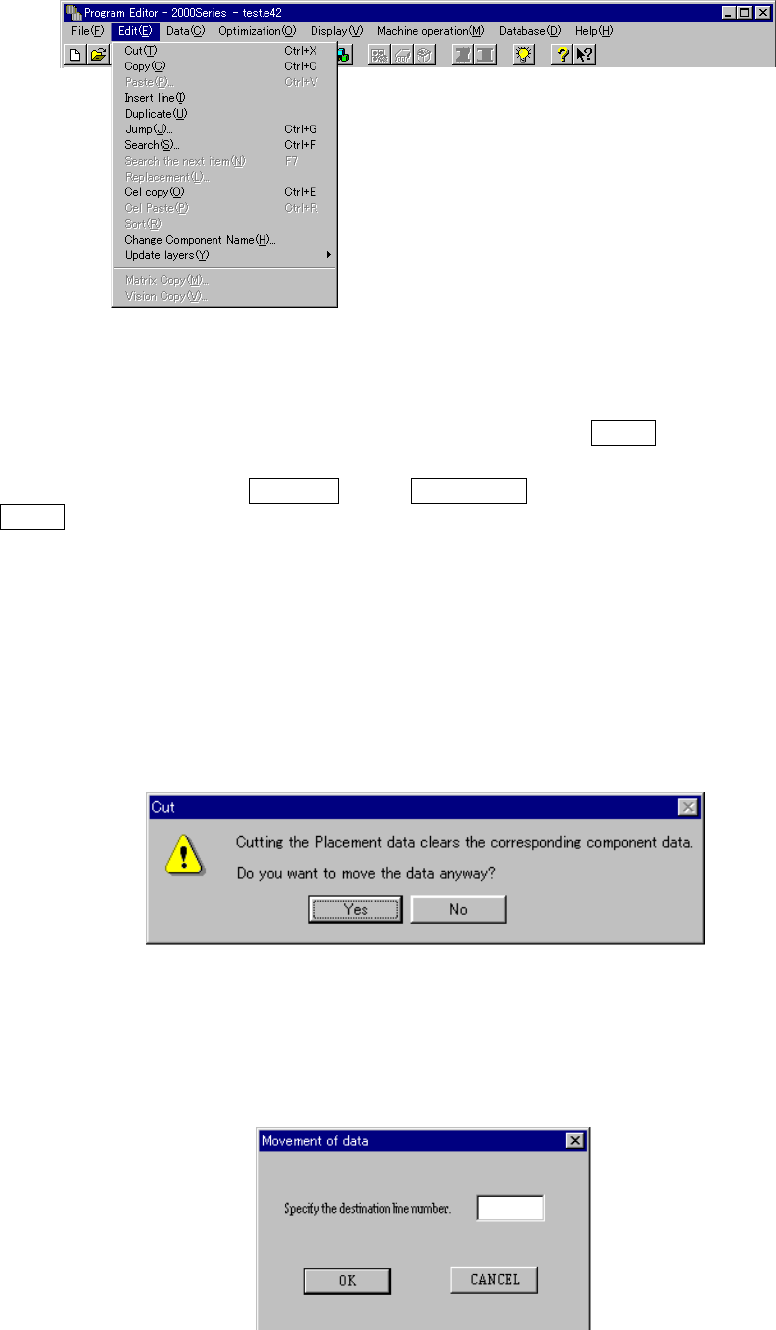 4 − 22 4.3 Editing W hen you select the [Edit] command on the m enu bar , the following commands menu appears on the screen. Selecting t he range of data T o cut or copy data, select the data rang e to be copied or cut i…