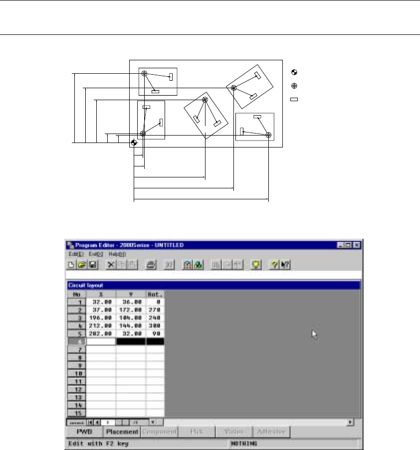 4 – 50 0 ° (165, 0) (320, 240) 180 ° (155, 240) 180 ° ⑥ BO C mk pos (mar k position) No. 1 to No. 3 W hen y ou select "PWB mark used" as the BOC type on the Basic setup window , enter the dist ance fr om the PW…