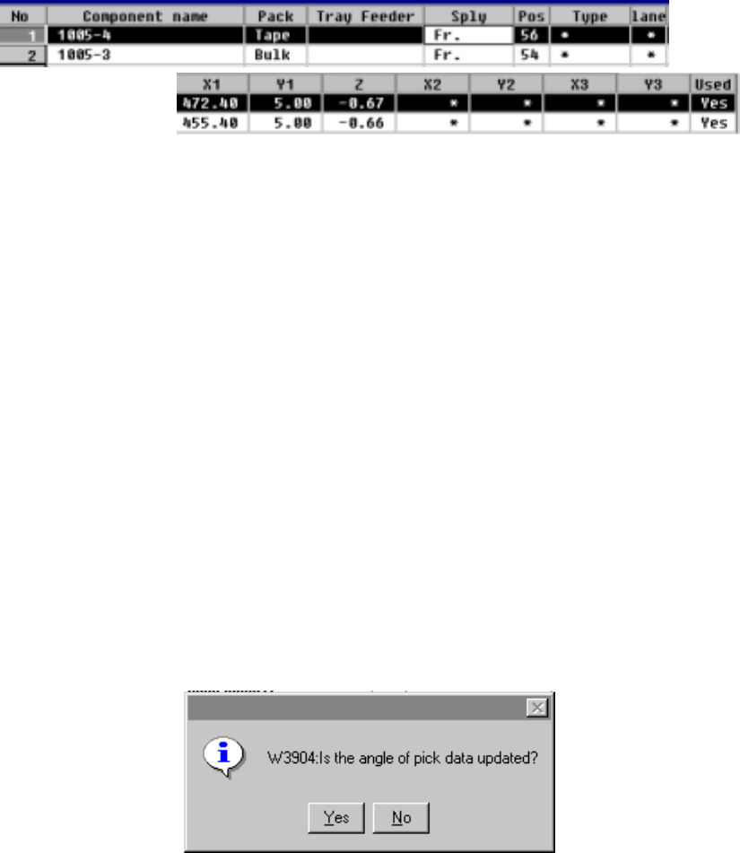 • When Pick data is created, the component feeding angle set in Component