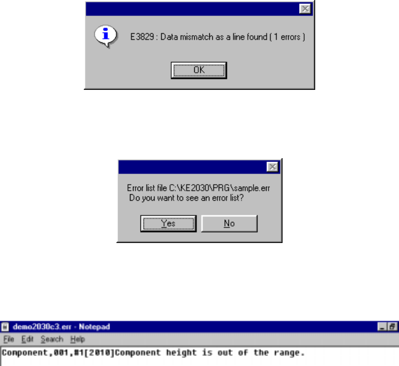 When you click the <OK> button if any error is detected, the message appears
