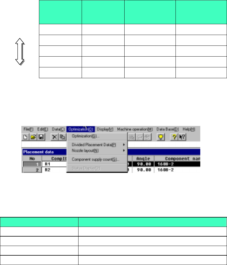 4 – 153 4.10 Optimization (1) Outli ne T he Optimization utilit y optimizes the f eeder mount ing position and t he pick-up/ placement order of a pr oduction progr am which was created with the Progr am Editing utilit y …