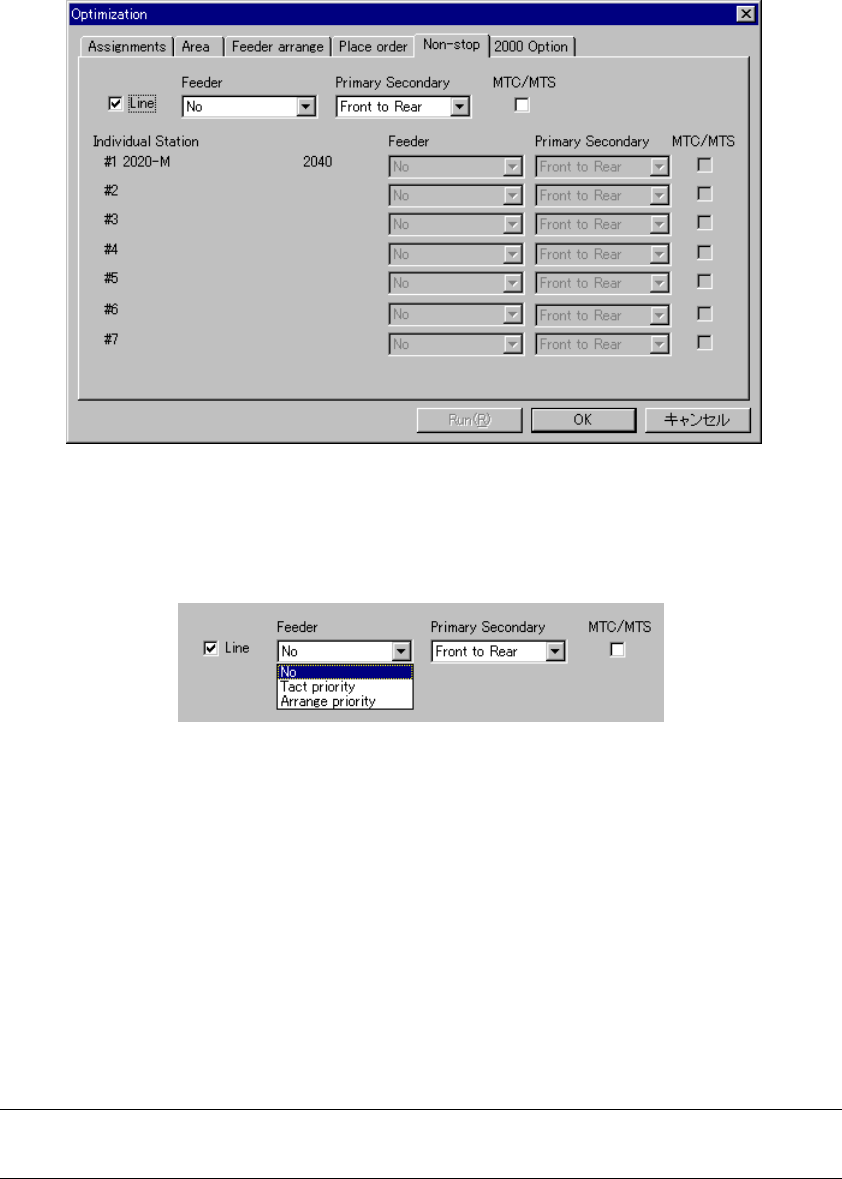 4 – 166 (7) Non-st op operation Y ou can use the O ptimization funct ion to specif y a station that is to per for m the Non-stop operat ion. W hen you use this opt ion, you can replace components without stopping the cur…