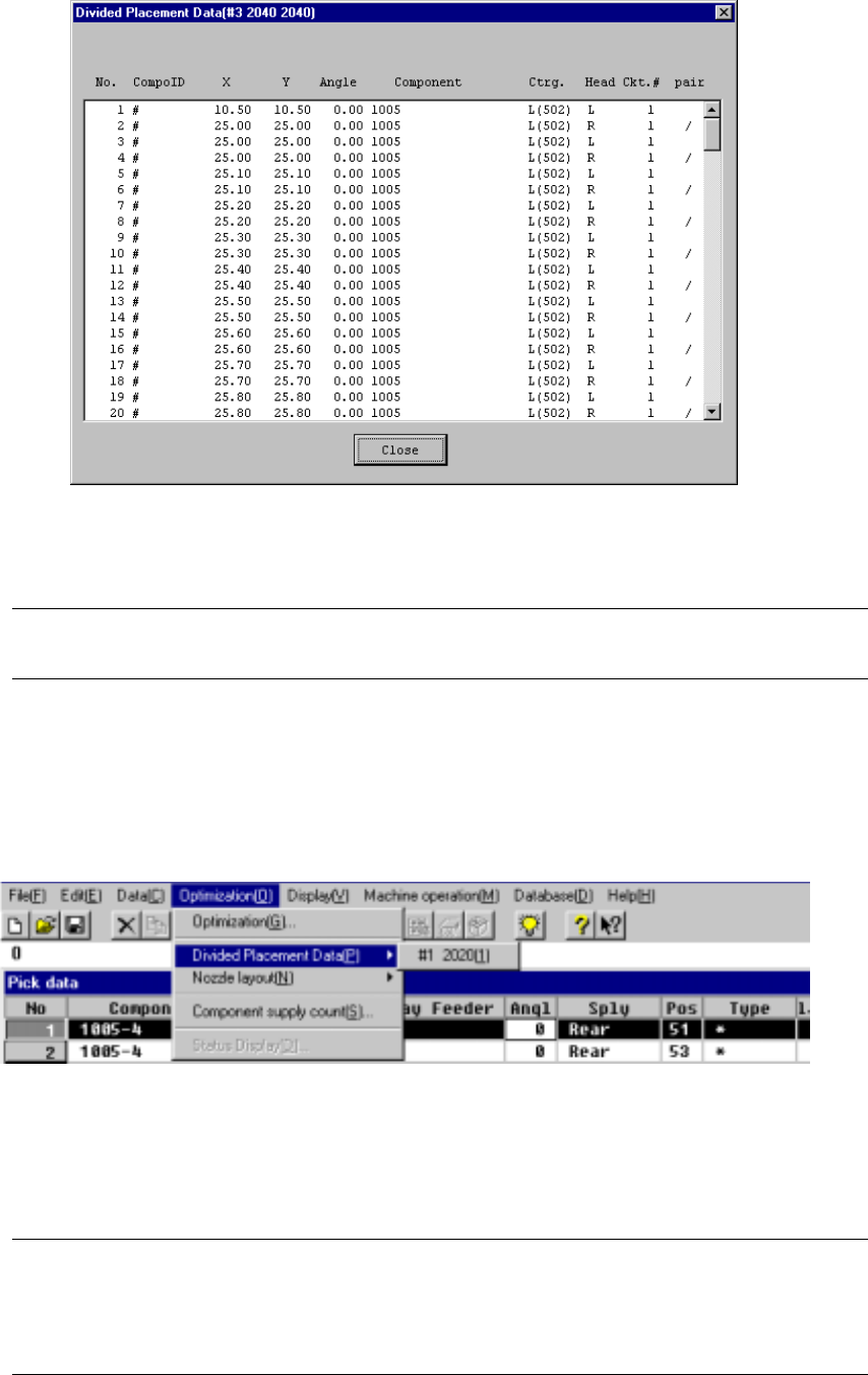 Figure 4.10.2.3 Divided Placement Data Display Example