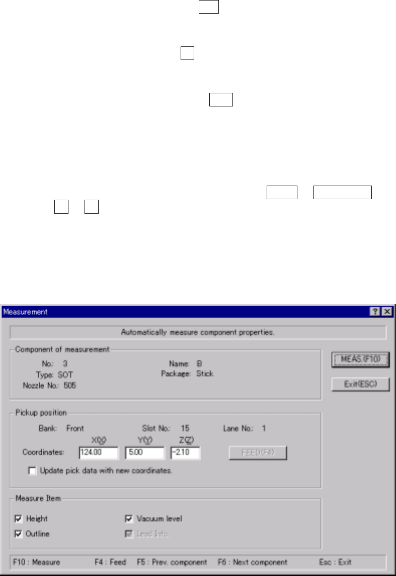 • On the “Measurement” dialog box, you can manually enter a component pick-up