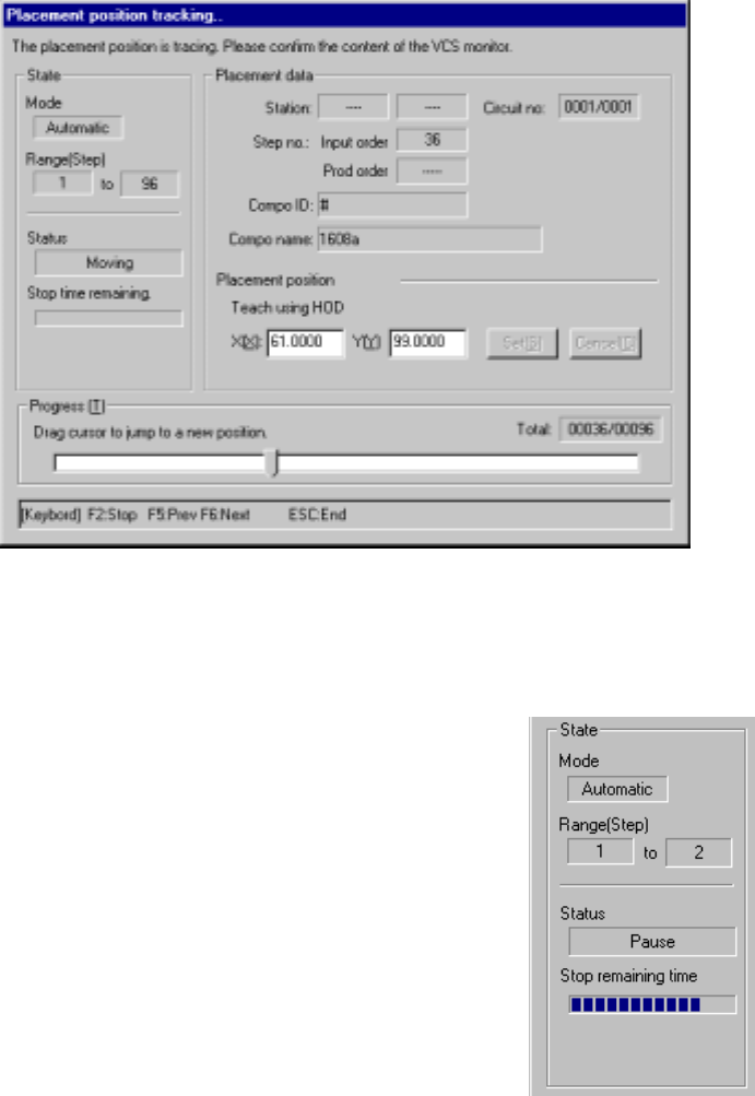 While the system is tracking a component placement position, you can use the