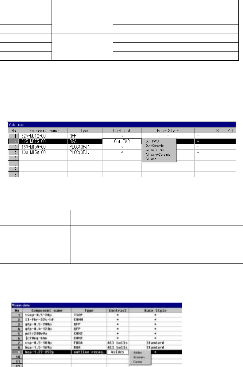 component”, or set the “recognition pattern for an outline-recognized