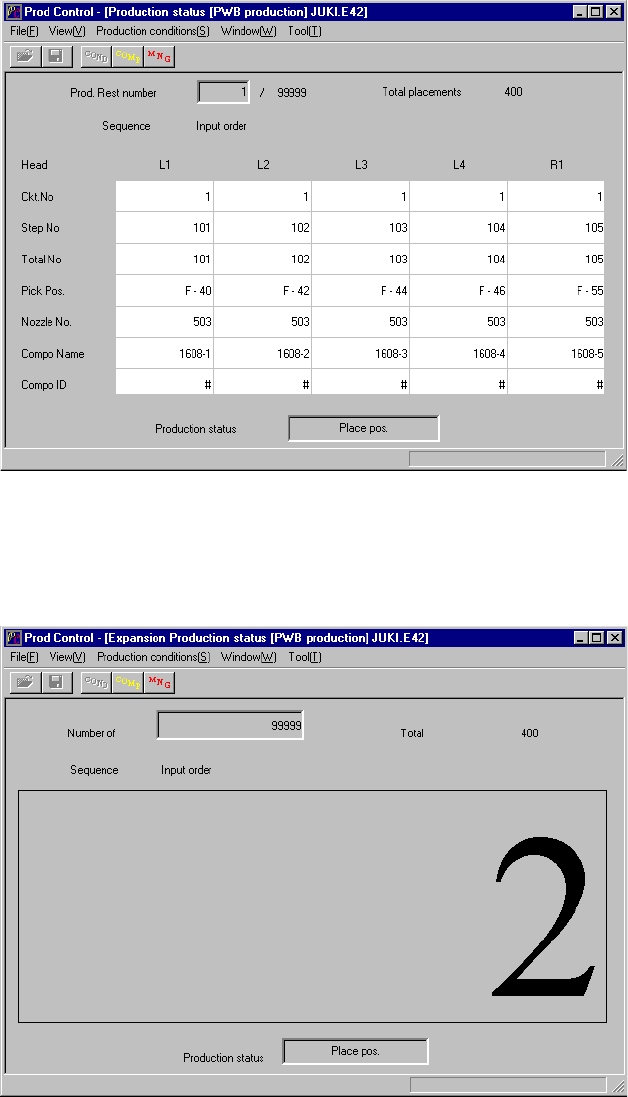 7 − 26 ① Pr od. Rest number Prod. Number : The total number of PW Bs t o be processed, which has been set in the "Product ion condition"s screen. Result number : T he number of PW B t hat have been already proc…