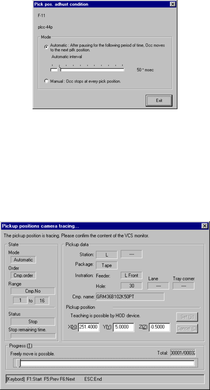 When pressing the <Exit> button on the "Pick pos. adjust condition" dialog box,