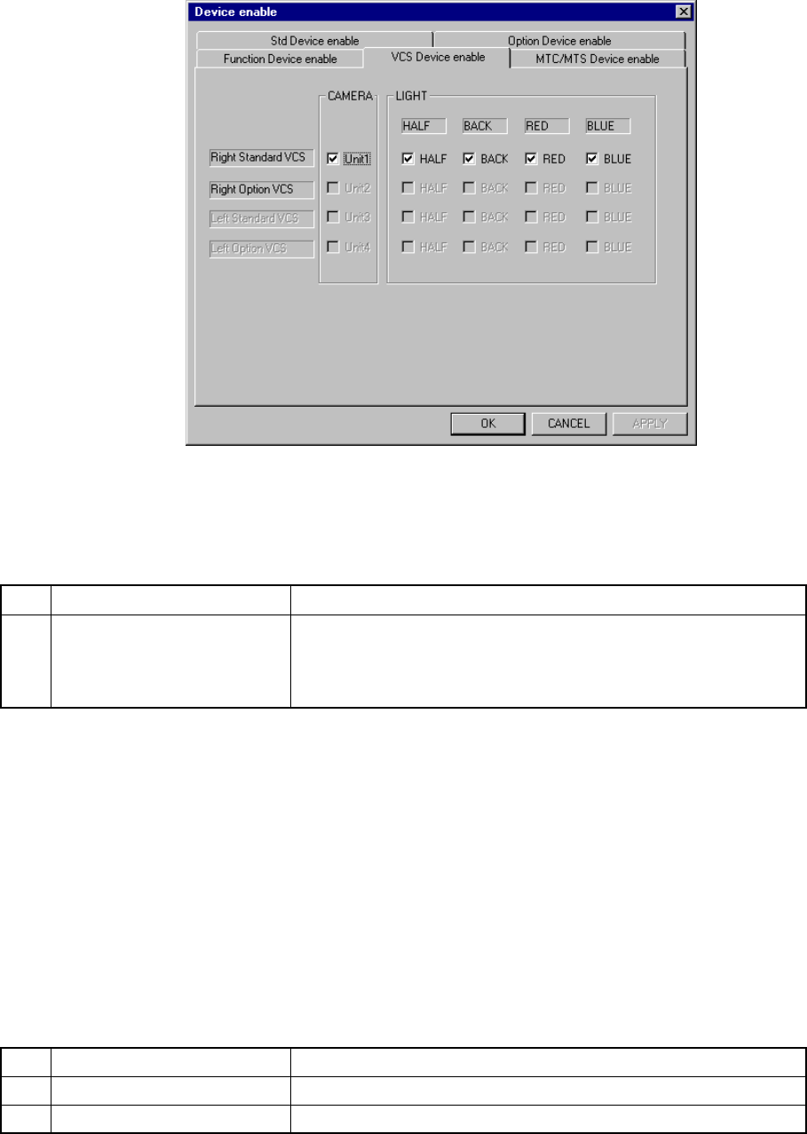 When you select the [VCS Device enable] tab, the “VCS Device setting” dialog box