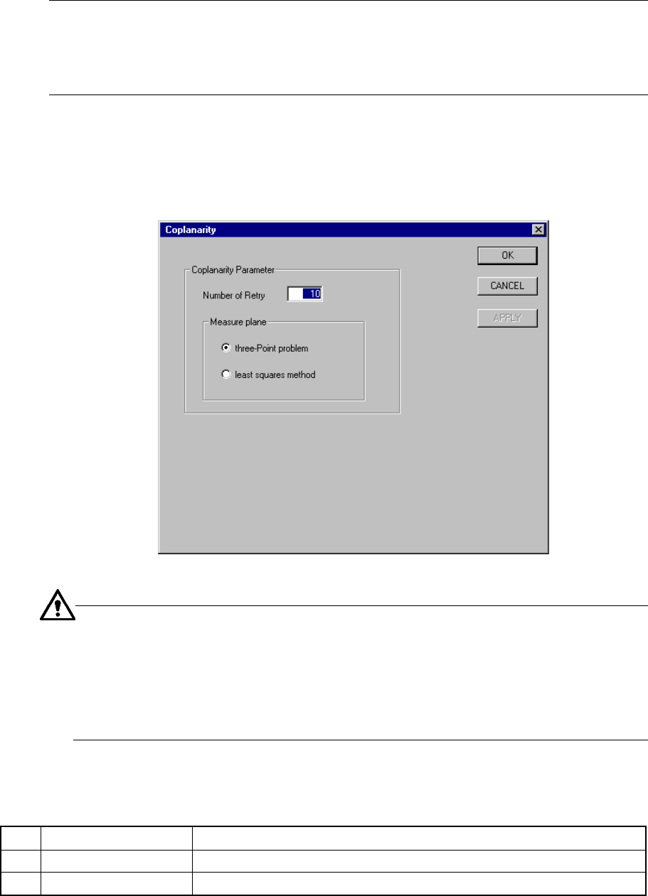 1 Number of Retry Sets the number of a retry operation to be done for a coplanarity check.