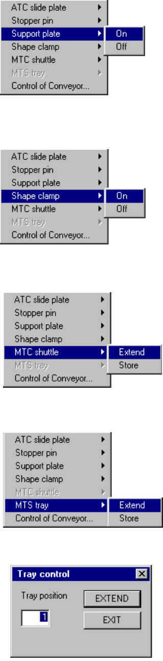 8 − 53 * Control of Conveyor W hen you select the menu item "Control of Conveyor", no extended menu appears on the screen and the dialog box appears instead as shown in the figur e below . ● If you select t he …