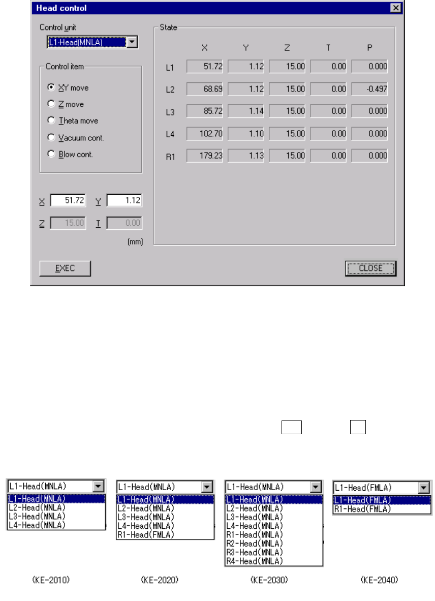 command, the following Head control dialog box appears on the screen.