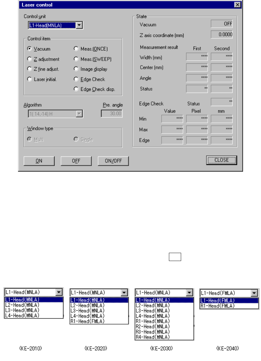 When you select the [Head] command on the [Ctrl] menu, then the [Laser control]