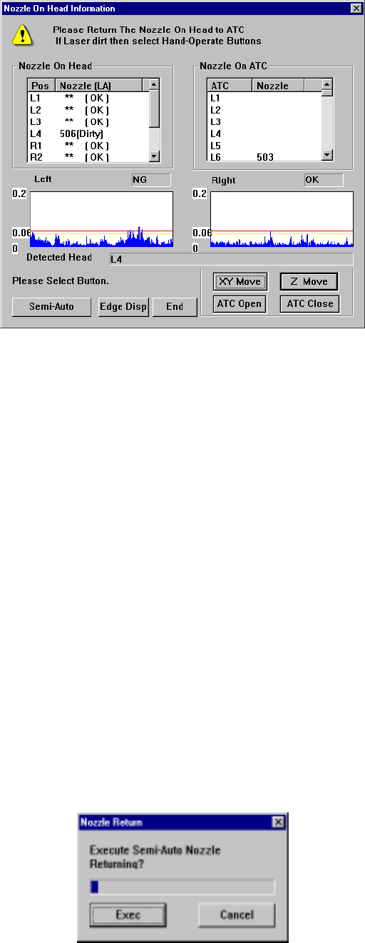 Step 2. The screen that asks you whether to return a nozzle semi-automatically