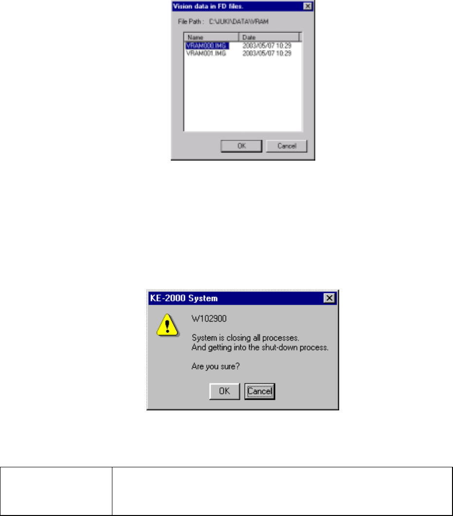 3 − 30 3.6.10 Sav ing vision data This f unction allows you to save the vision data obtained during production onto a floppy disk. Select a f ile you want to save onto a floppy disk on the dialog box shown below , and cl…