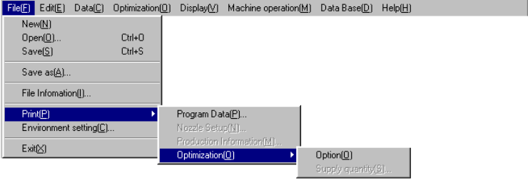 Print Prints out a production program file, nozzle assignment, and production management information.