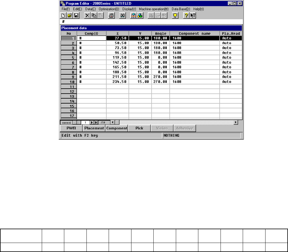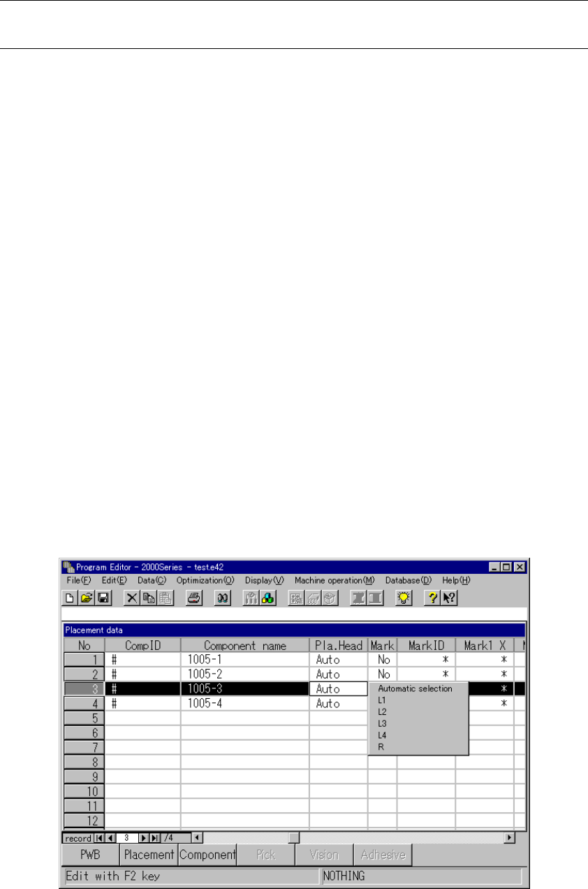 4 – 56 4.6.2 How to enter data Placement data initial screen Details ① (Component) ID Enter the com ponent ID using the f ormula bar . W hen this paramet er is def ined, the def ault values are shown and an asterisk ( *)…