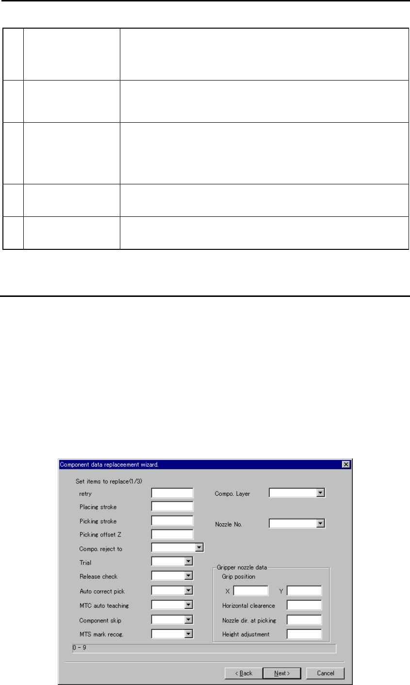 Select the [Replacement] command on the “Edit” menu when the “Component data