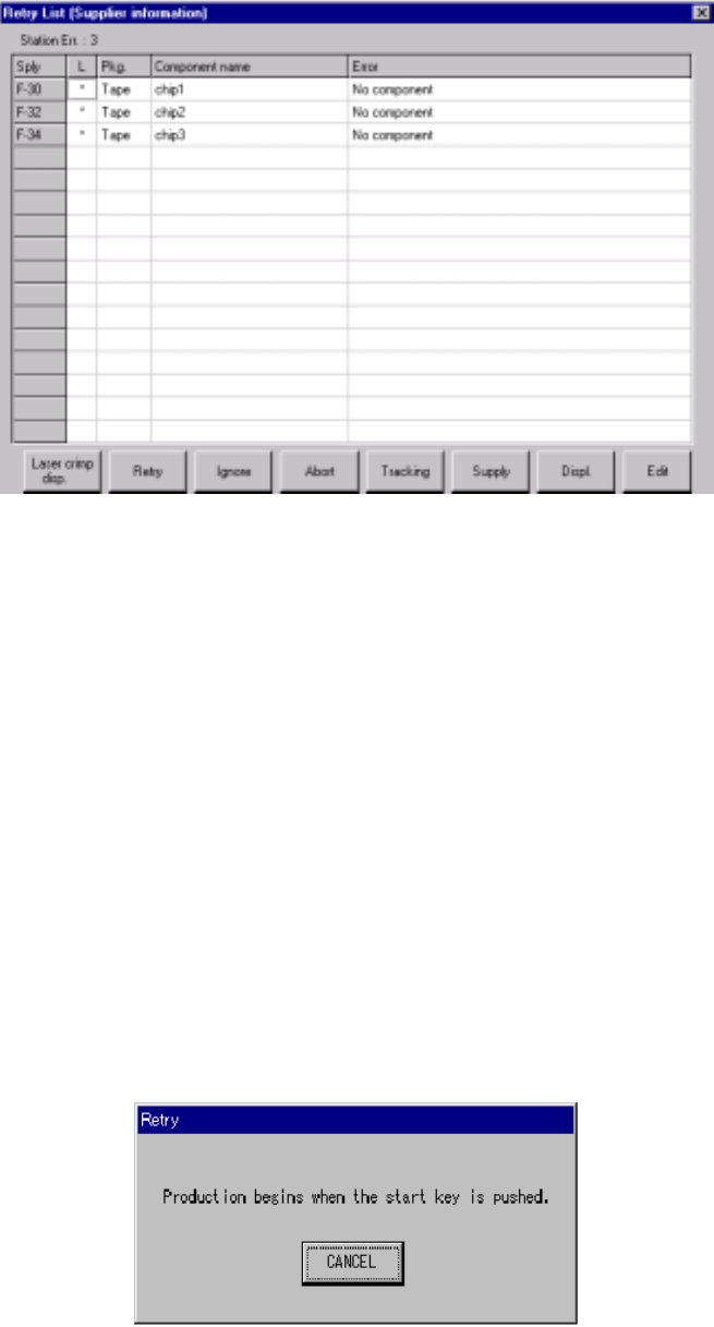 Figure 7.3.2.1 Retry List display dialog box (Supplier information)