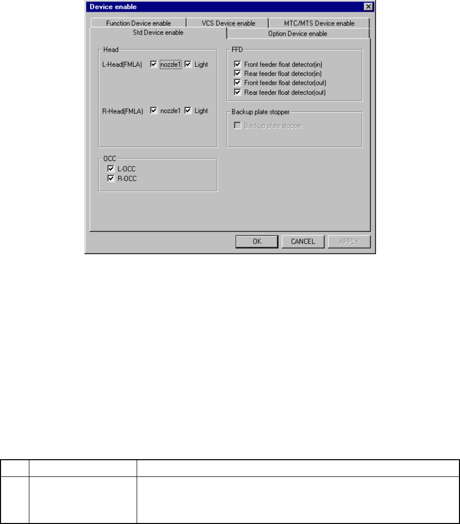 When you click the “Std Device enable” tab, a screen appears as shown in Figure