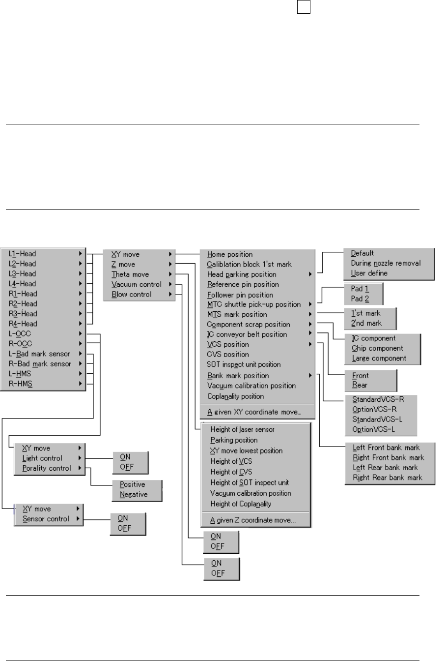 9 − 5 (3) Head control menu ① How to st art W hen you click the rig ht butt on of a t rackball or the F9 key , t he pop-up menu appears. Select the desired item f rom the menu. The unit which is not check ed (not install…