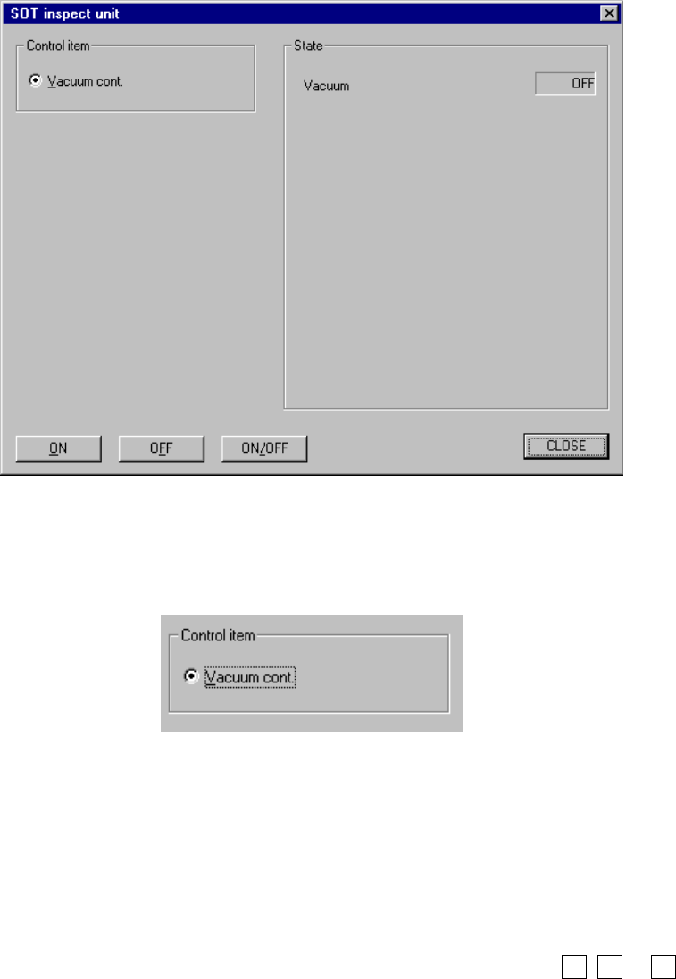 When you select the [Control], [Others] and [SOT inspect unit] commands in this