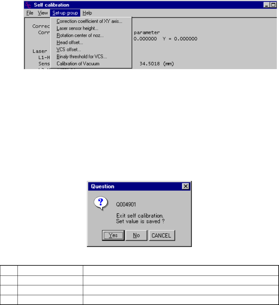 2 No Cancels your settings, then exits from Self-calibration mode.